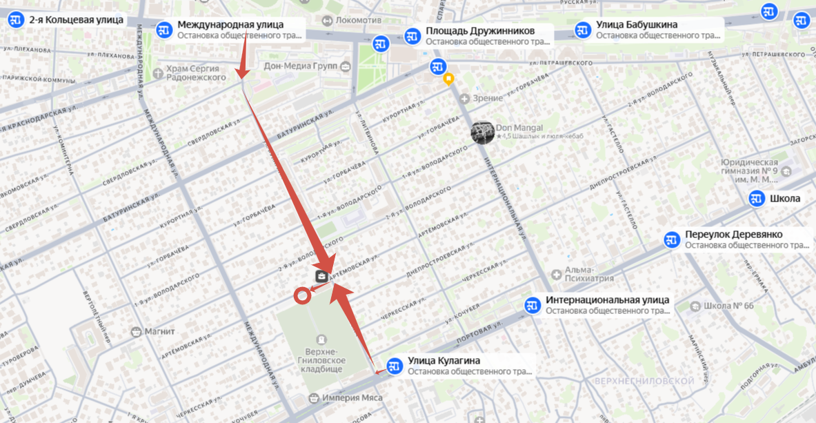 От остановки «Пр. Стачки»до Железнодорожного районного суда Ростова-на-Дону можно дойти за 12 минут, расстояние—926 метров. Рядом проходят автобусные линии 15, 16, 26 и 34.